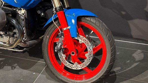 • Felge vorne und hinten grundiert und lackiert. (#blau/rot)